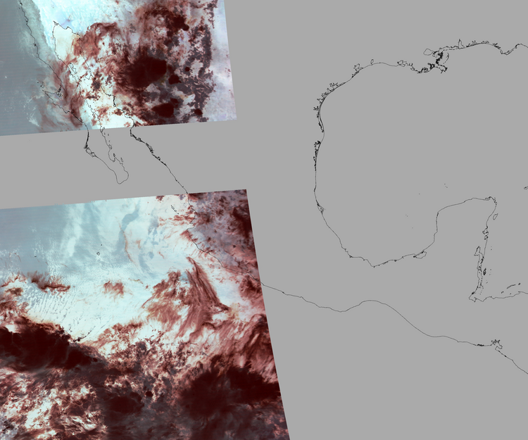 Nubosidad en el terreno:21% Nubosidad sobre México:22% Datos nulos en la escena:52% Datos nulos sobre México:48% |