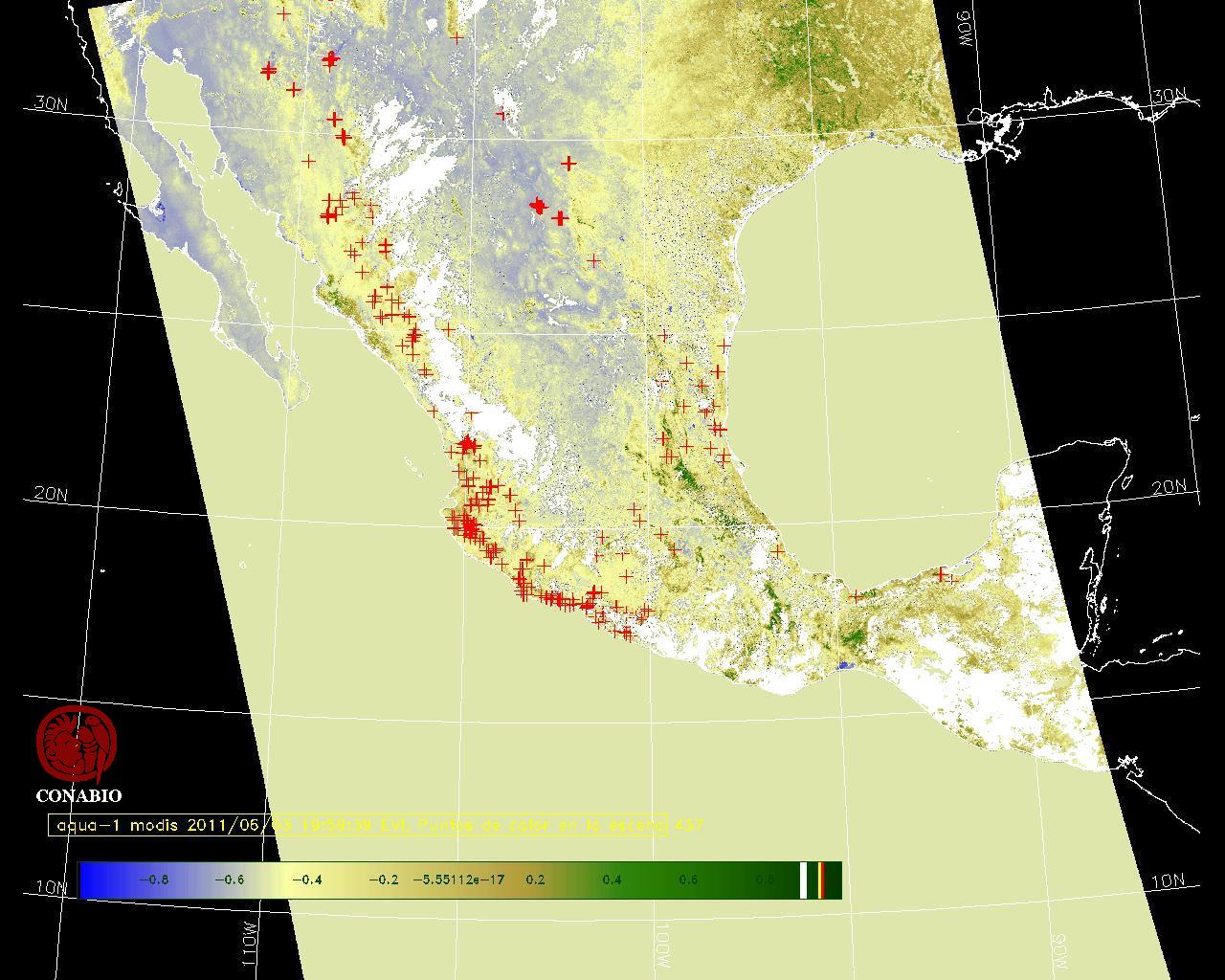 Se considera como punto de calor al elemento espacial mínimo de la imagen (pixel) que reporta una temperatura elevada. Para las imágenes diurnas la temperatura mínima considera es de 42 C y para las imágenes nocturnas es de 25 C. |