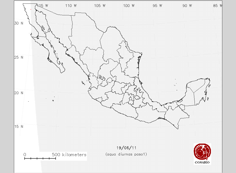 Se considera como punto de calor al elemento espacial mínimo de la imagen (pixel) que reporta una temperatura elevada. Para las imágenes diurnas la temperatura mínima considera es de 42 C y para las imágenes nocturnas es de 25 C. |