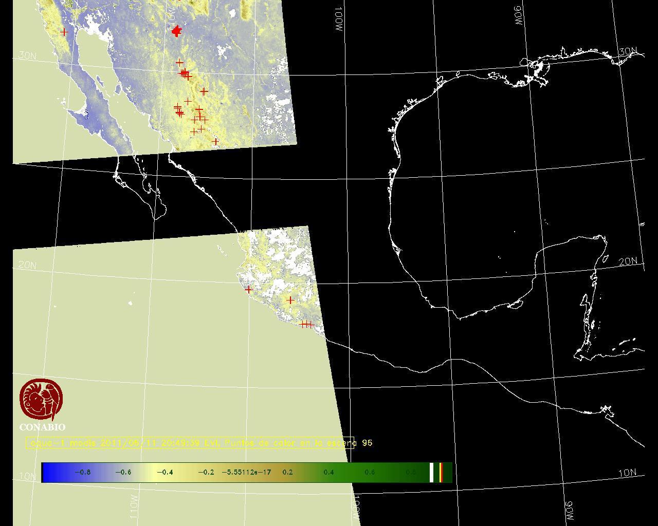 Se considera como punto de calor al elemento espacial mínimo de la imagen (pixel) que reporta una temperatura elevada. Para las imágenes diurnas la temperatura mínima considera es de 42 C y para las imágenes nocturnas es de 25 C. |