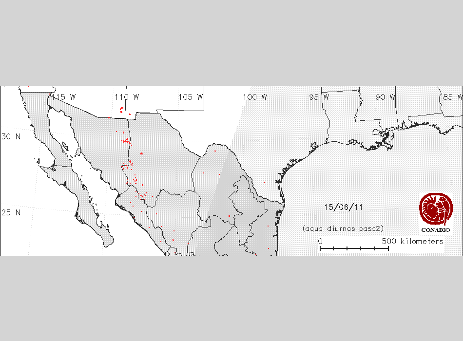 Se considera como punto de calor al elemento espacial mínimo de la imagen (pixel) que reporta una temperatura elevada. Para las imágenes diurnas la temperatura mínima considera es de 42 C y para las imágenes nocturnas es de 25 C. |