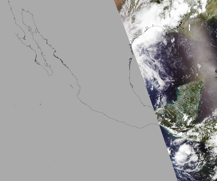 Nubosidad en el terreno:49% Nubosidad sobre México:7% Datos nulos en la escena:67% Datos nulos sobre México:87% |