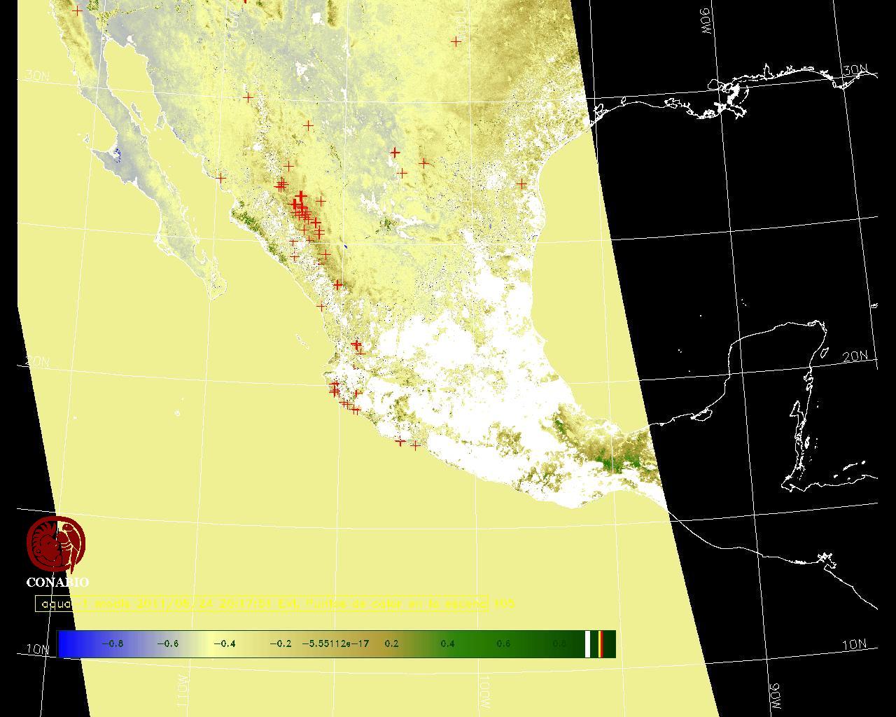 Se considera como punto de calor al elemento espacial mínimo de la imagen (pixel) que reporta una temperatura elevada. Para las imágenes diurnas la temperatura mínima considera es de 42 C y para las imágenes nocturnas es de 25 C. |