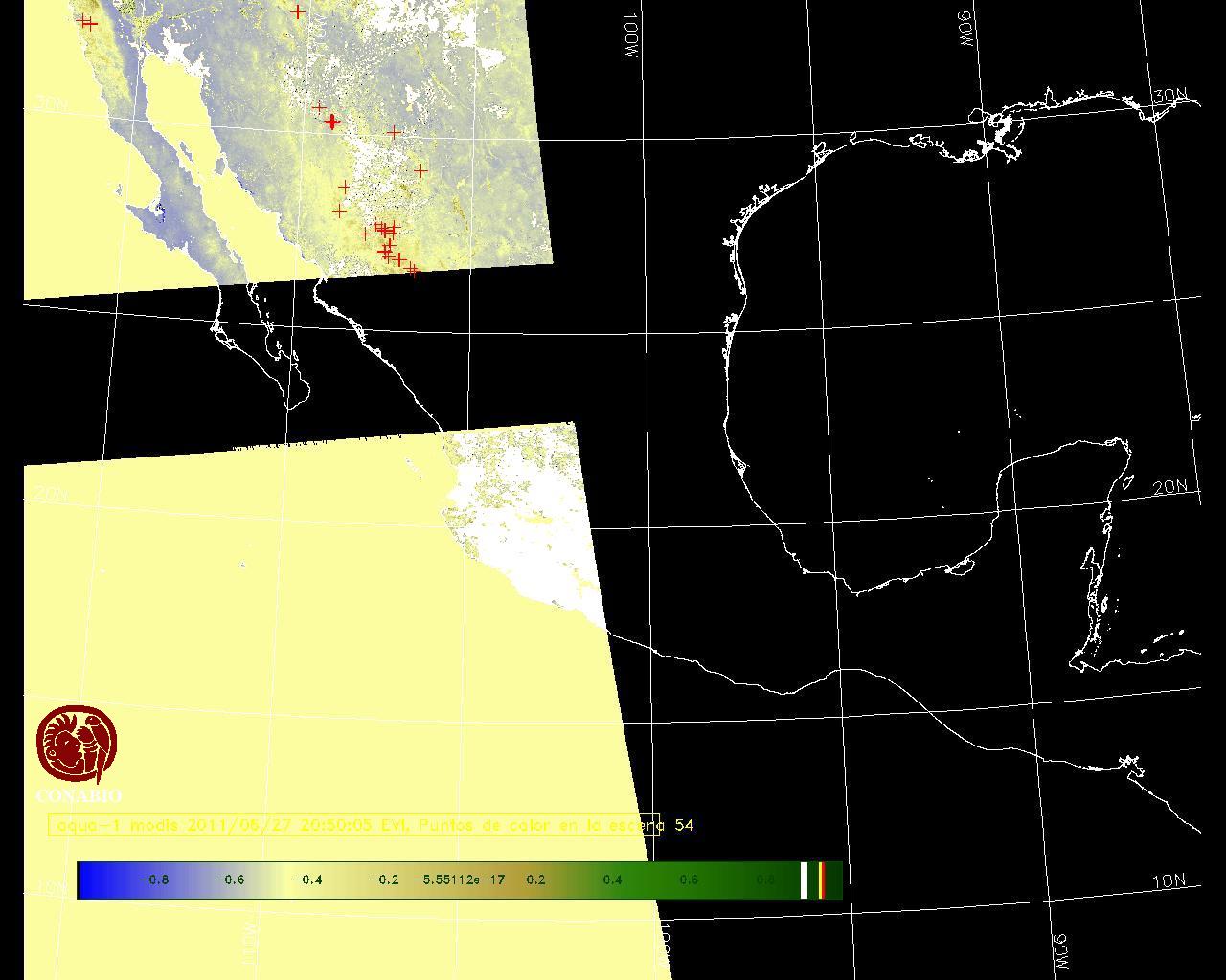 Se considera como punto de calor al elemento espacial mínimo de la imagen (pixel) que reporta una temperatura elevada. Para las imágenes diurnas la temperatura mínima considera es de 42 C y para las imágenes nocturnas es de 25 C. |