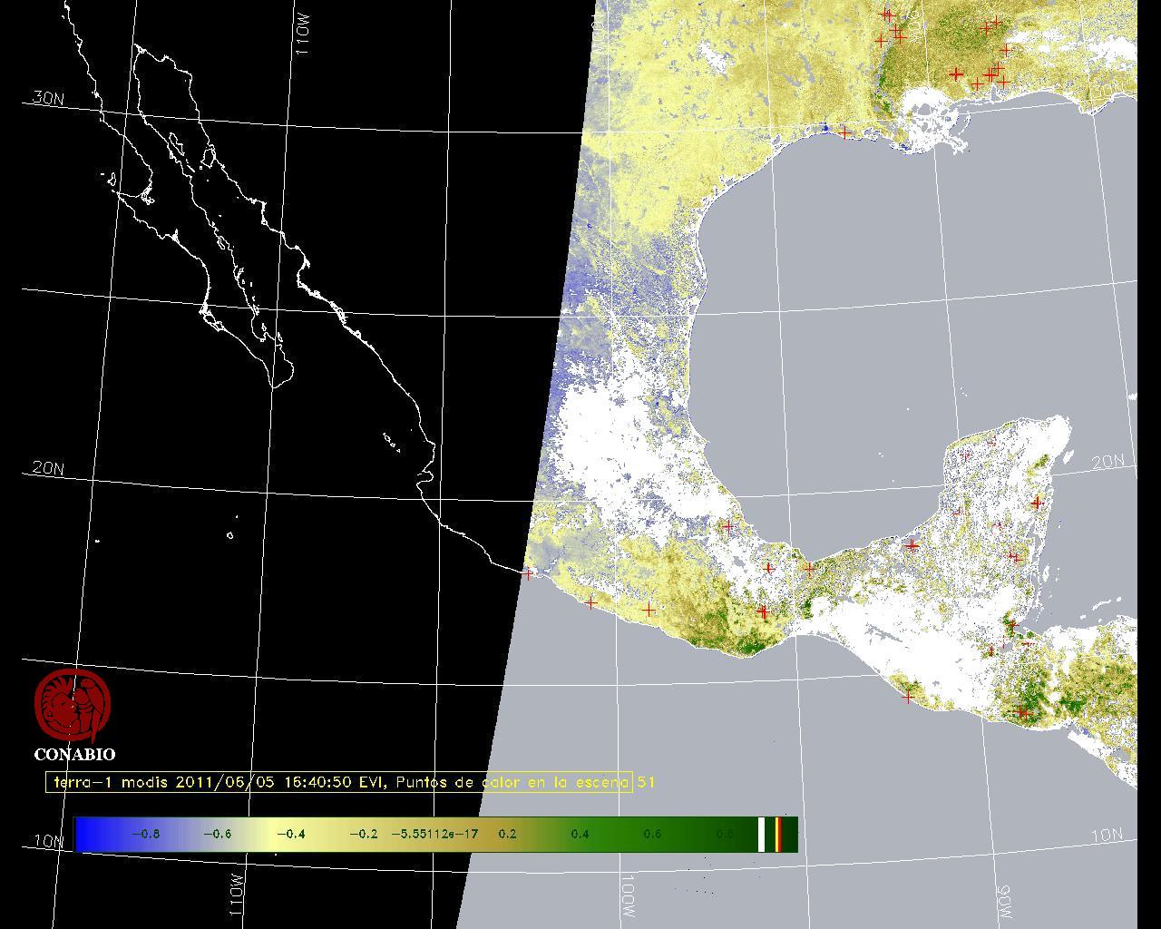 Se considera como punto de calor al elemento espacial mínimo de la imagen (pixel) que reporta una temperatura elevada. Para las imágenes diurnas la temperatura mínima considera es de 42 C y para las imágenes nocturnas es de 25 C. |