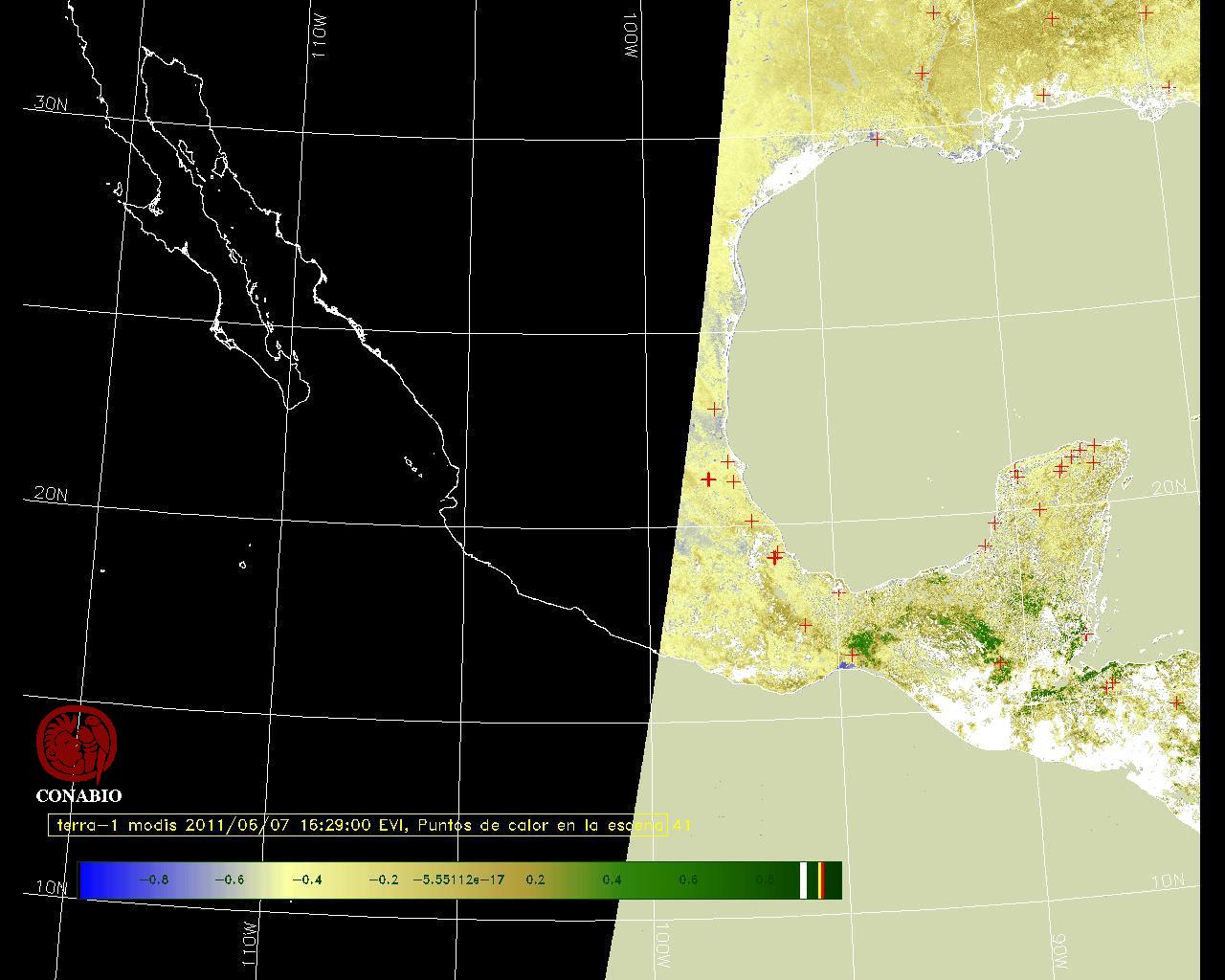 Se considera como punto de calor al elemento espacial mínimo de la imagen (pixel) que reporta una temperatura elevada. Para las imágenes diurnas la temperatura mínima considera es de 42 C y para las imágenes nocturnas es de 25 C. |