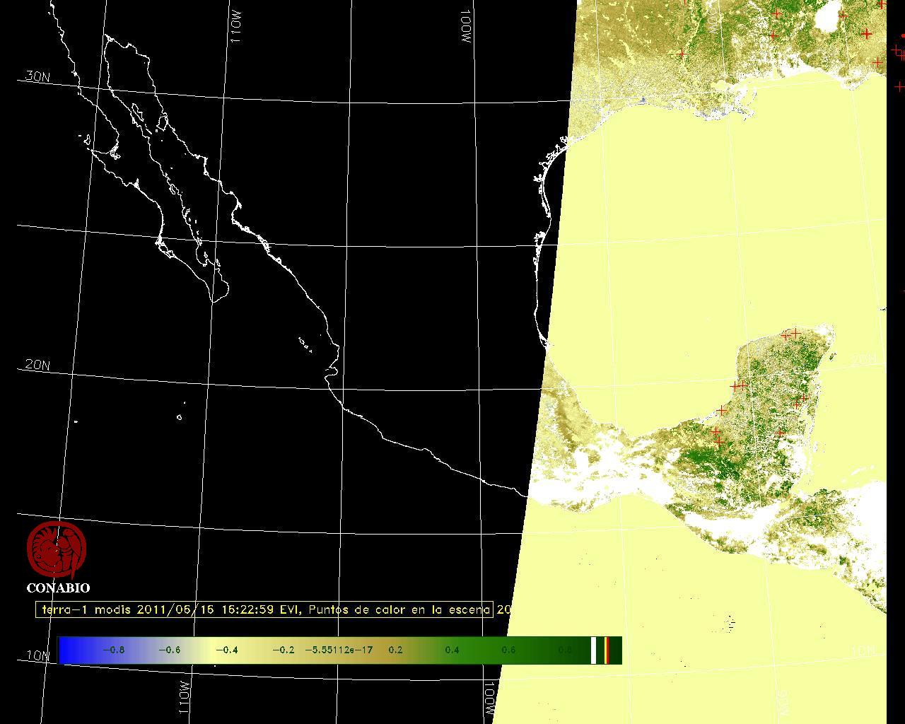 Se considera como punto de calor al elemento espacial mínimo de la imagen (pixel) que reporta una temperatura elevada. Para las imágenes diurnas la temperatura mínima considera es de 42 C y para las imágenes nocturnas es de 25 C. |