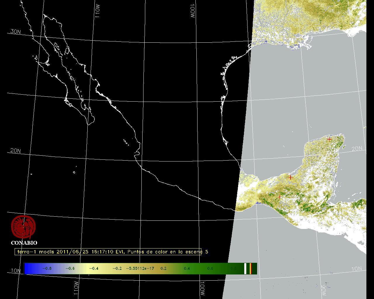 Se considera como punto de calor al elemento espacial mínimo de la imagen (pixel) que reporta una temperatura elevada. Para las imágenes diurnas la temperatura mínima considera es de 42 C y para las imágenes nocturnas es de 25 C. |