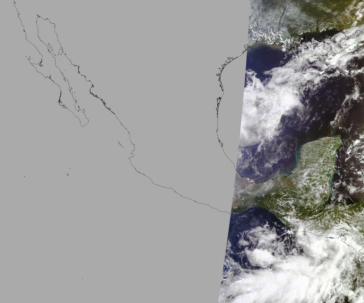 Nubosidad en el terreno:26% Nubosidad sobre México:17% Datos nulos en la escena:65% Datos nulos sobre México:83% |