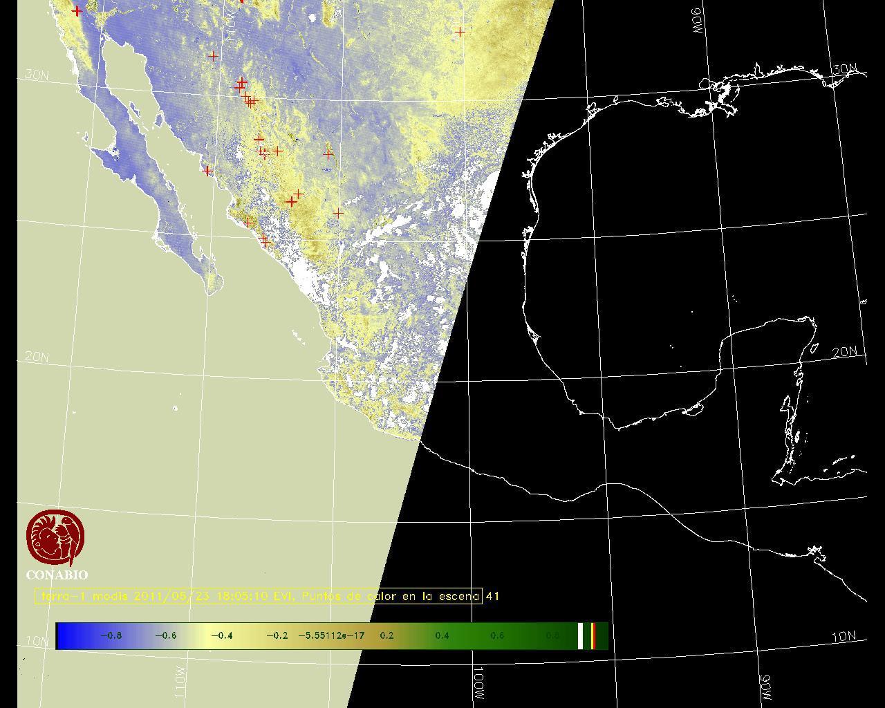 Se considera como punto de calor al elemento espacial mínimo de la imagen (pixel) que reporta una temperatura elevada. Para las imágenes diurnas la temperatura mínima considera es de 42 C y para las imágenes nocturnas es de 25 C. |