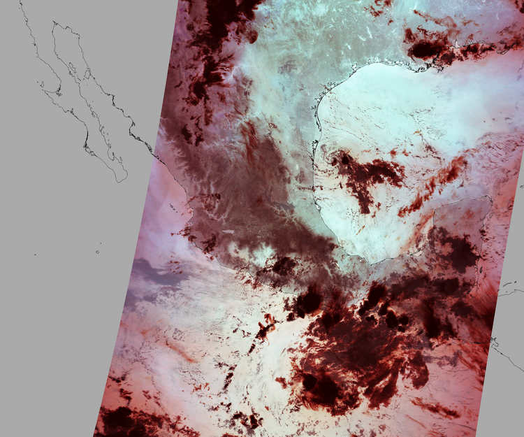 Nubosidad en el terreno:8% Nubosidad sobre México:4% Datos nulos en la escena:29% Datos nulos sobre México:22% |