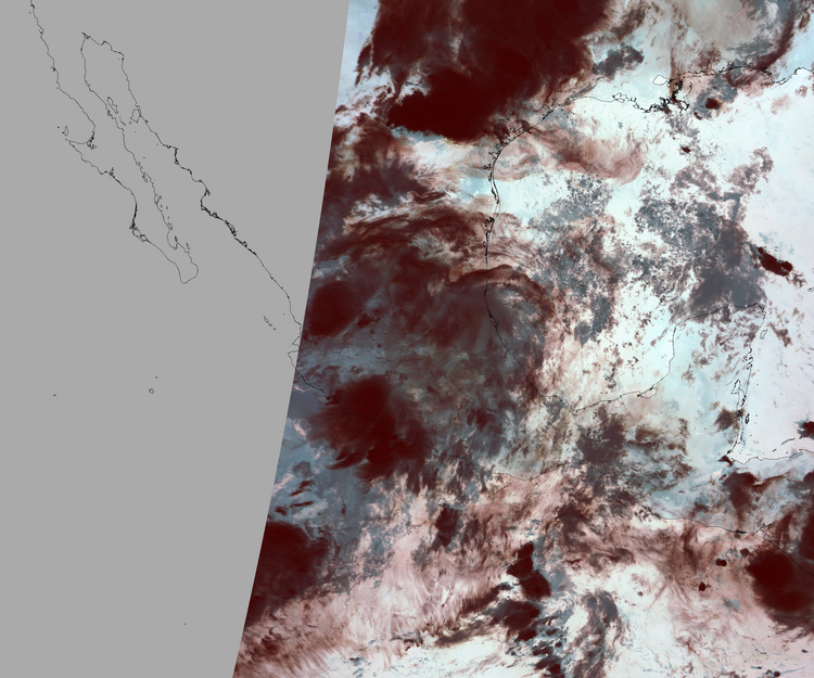 Nubosidad en el terreno:65% Nubosidad sobre México:75% Datos nulos en la escena:36% Datos nulos sobre México:35% |