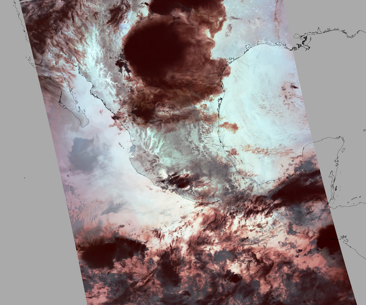 Nubosidad en el terreno:39% Nubosidad sobre México:34% Datos nulos en la escena:28% Datos nulos sobre México:4% |
