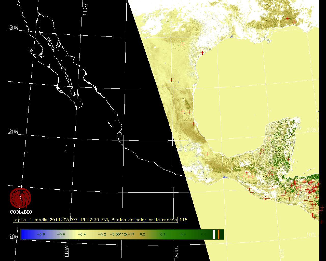Se considera como punto de calor al elemento espacial mínimo de la imagen (pixel) que reporta una temperatura elevada. Para las imágenes diurnas la temperatura mínima considera es de 42 C y para las imágenes nocturnas es de 25 C. |