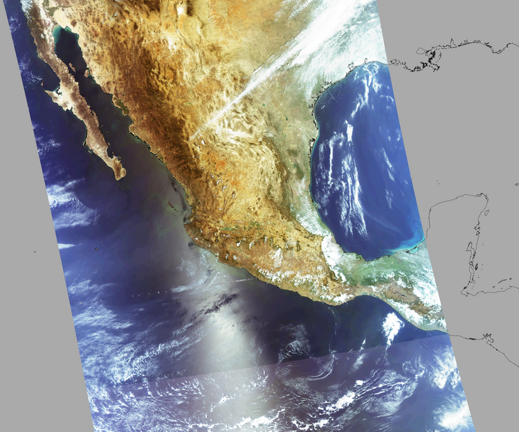 Nubosidad en el terreno:9% Nubosidad sobre México:3% Datos nulos en la escena:28% Datos nulos sobre México:6% |
