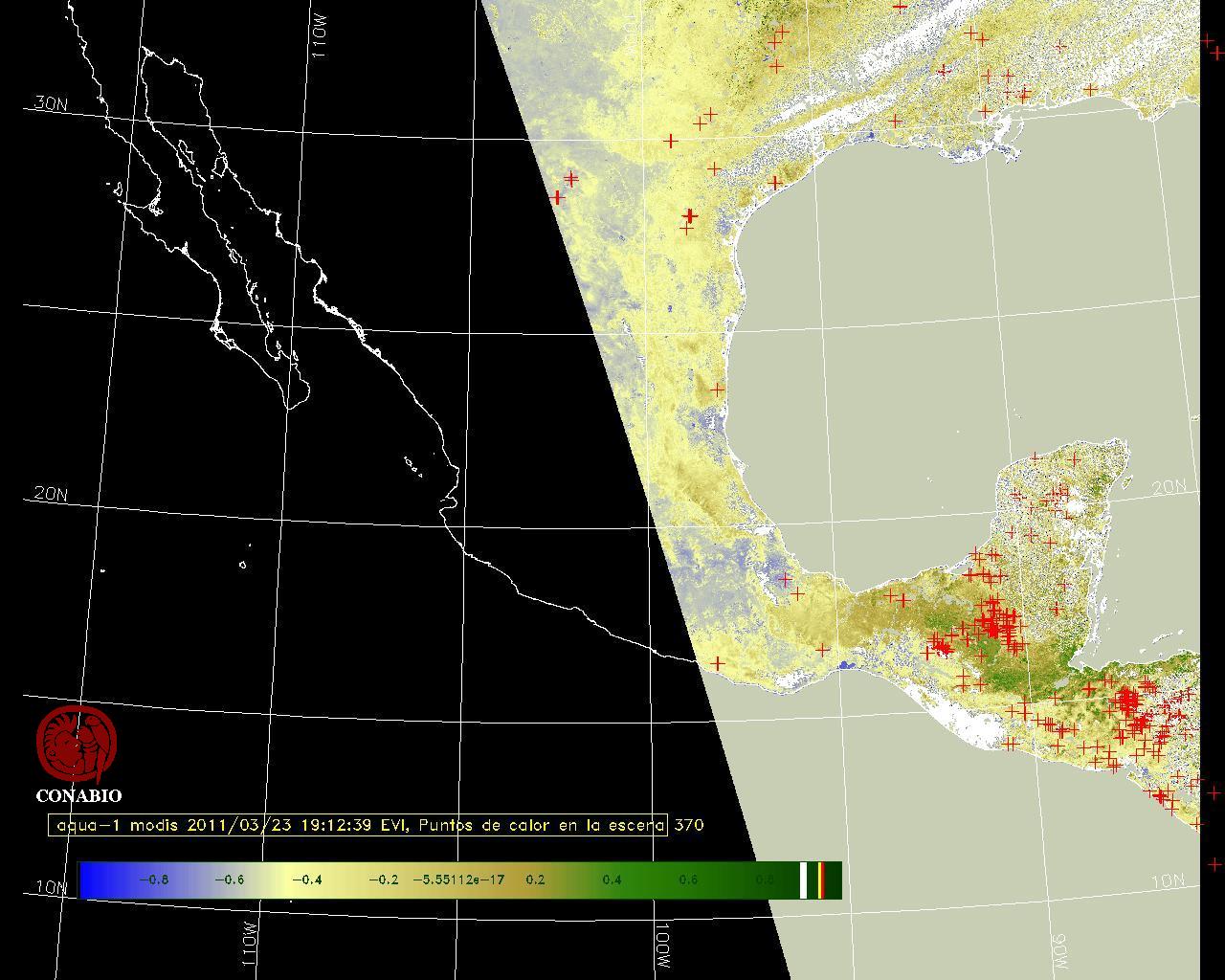 Se considera como punto de calor al elemento espacial mínimo de la imagen (pixel) que reporta una temperatura elevada. Para las imágenes diurnas la temperatura mínima considera es de 42 C y para las imágenes nocturnas es de 25 C. |