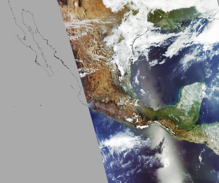 Nubosidad en el terreno:21% Nubosidad sobre México:10% Datos nulos en la escena:38% Datos nulos sobre México:25% |
