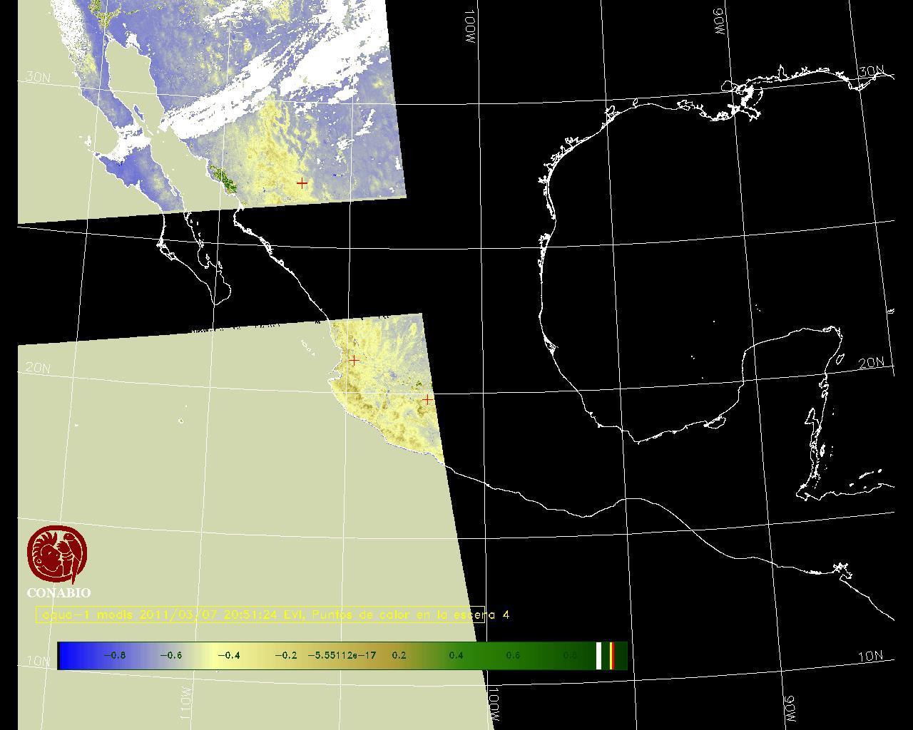 Se considera como punto de calor al elemento espacial mínimo de la imagen (pixel) que reporta una temperatura elevada. Para las imágenes diurnas la temperatura mínima considera es de 42 C y para las imágenes nocturnas es de 25 C. |