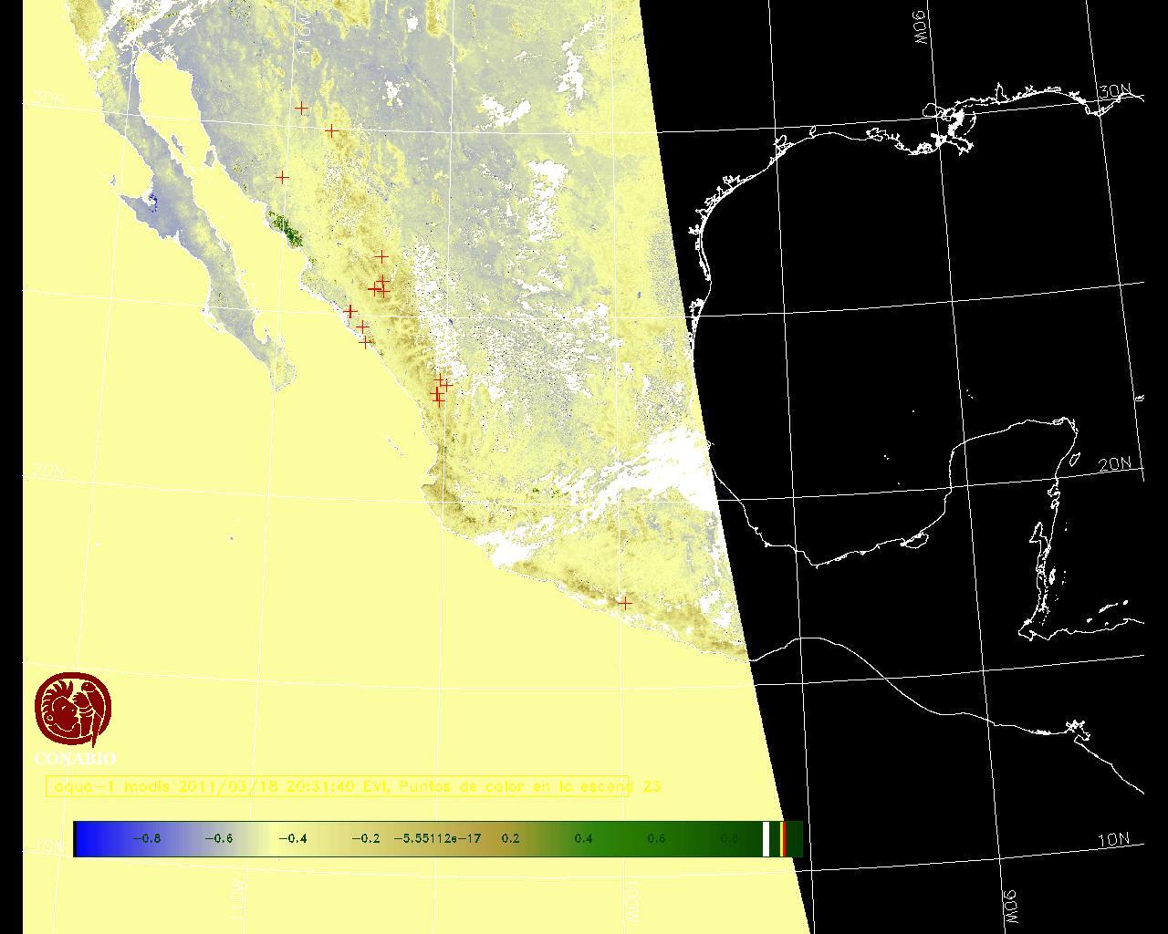 Se considera como punto de calor al elemento espacial mínimo de la imagen (pixel) que reporta una temperatura elevada. Para las imágenes diurnas la temperatura mínima considera es de 42 C y para las imágenes nocturnas es de 25 C. |