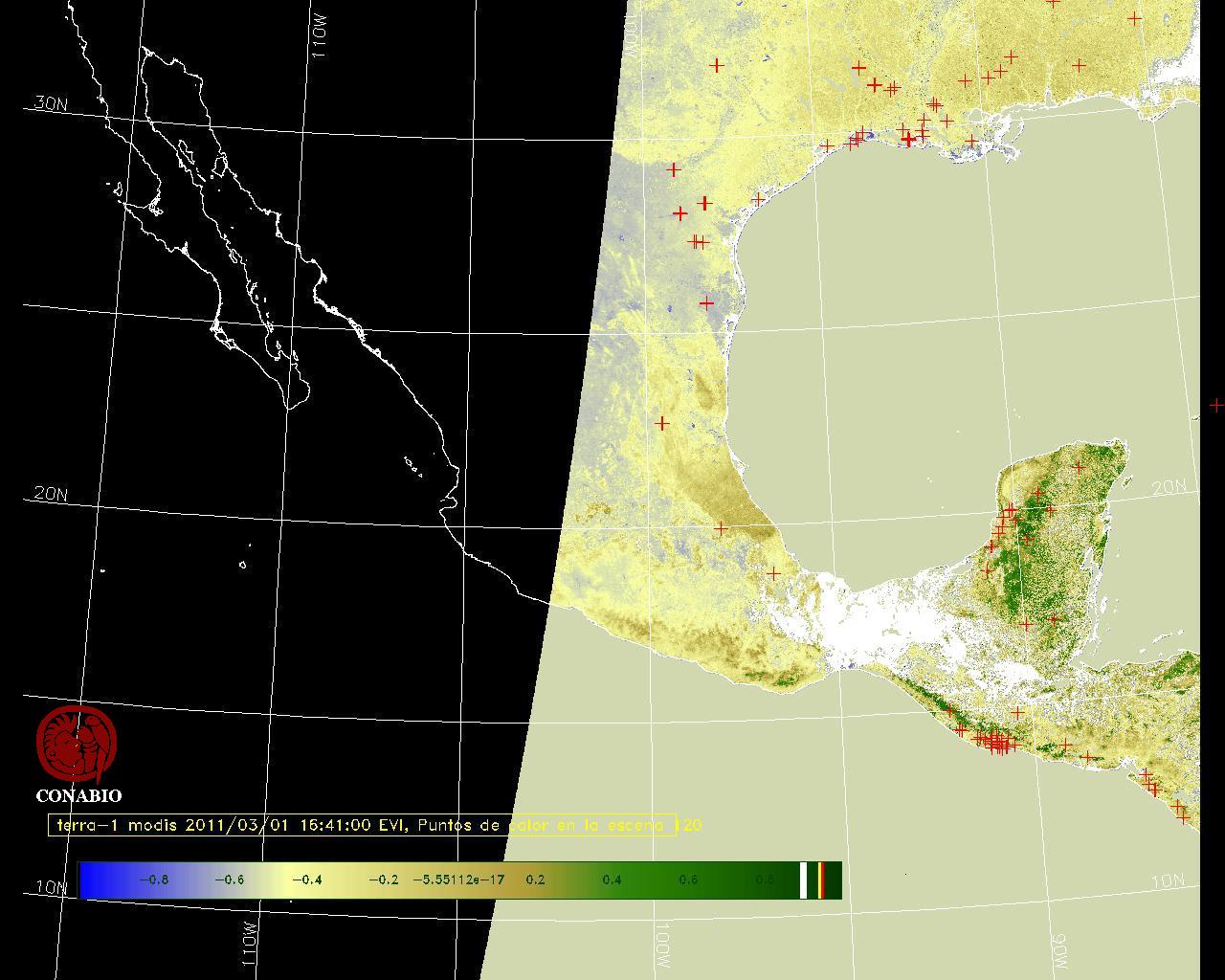 Se considera como punto de calor al elemento espacial mínimo de la imagen (pixel) que reporta una temperatura elevada. Para las imágenes diurnas la temperatura mínima considera es de 42 C y para las imágenes nocturnas es de 25 C. |