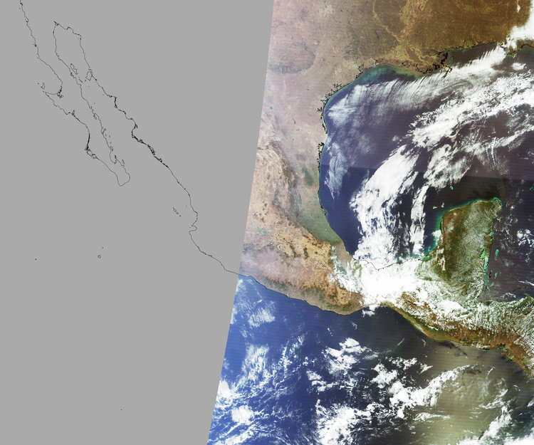 Nubosidad en el terreno:7% Nubosidad sobre México:11% Datos nulos en la escena:45% Datos nulos sobre México:54% |