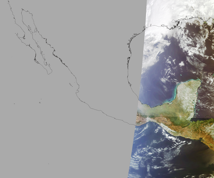 Nubosidad en el terreno:39% Nubosidad sobre México:5% Datos nulos en la escena:64% Datos nulos sobre México:83% |