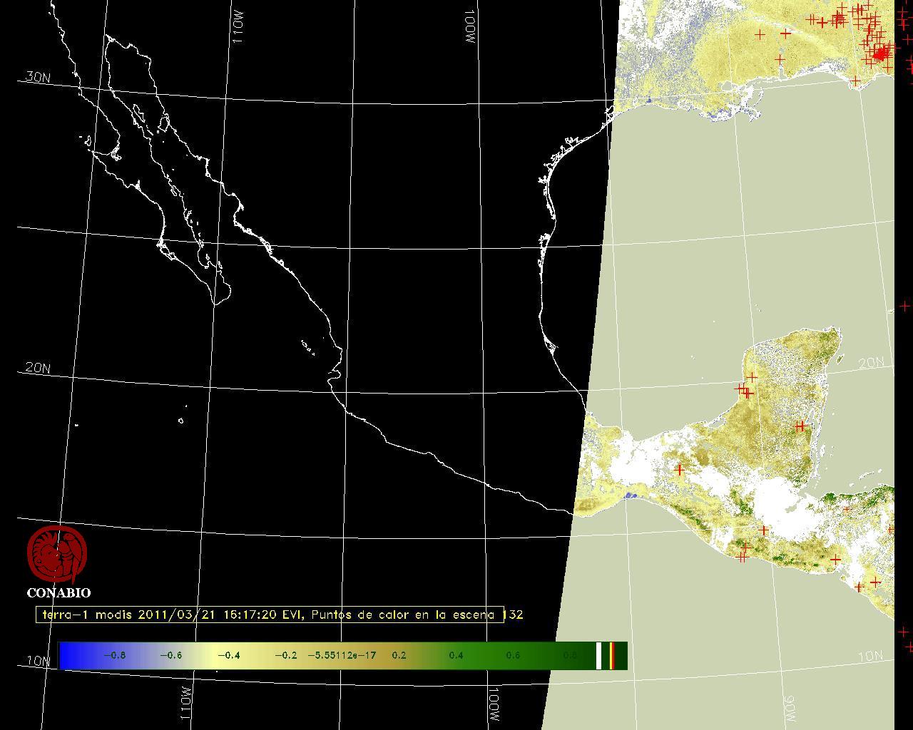 Se considera como punto de calor al elemento espacial mínimo de la imagen (pixel) que reporta una temperatura elevada. Para las imágenes diurnas la temperatura mínima considera es de 42 C y para las imágenes nocturnas es de 25 C. |