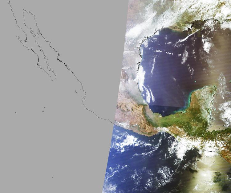 Nubosidad en el terreno:16% Nubosidad sobre México:5% Datos nulos en la escena:50% Datos nulos sobre México:63% |