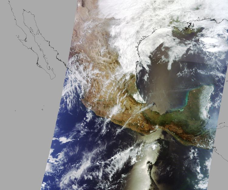 Nubosidad en el terreno:40% Nubosidad sobre México:20% Datos nulos en la escena:29% Datos nulos sobre México:22% |
