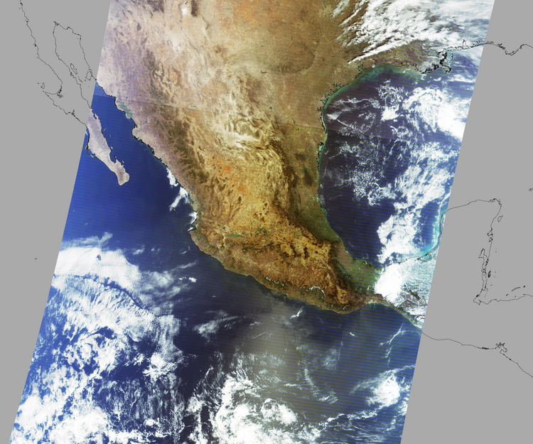 Nubosidad en el terreno:6% Nubosidad sobre México:2% Datos nulos en la escena:28% Datos nulos sobre México:14% |