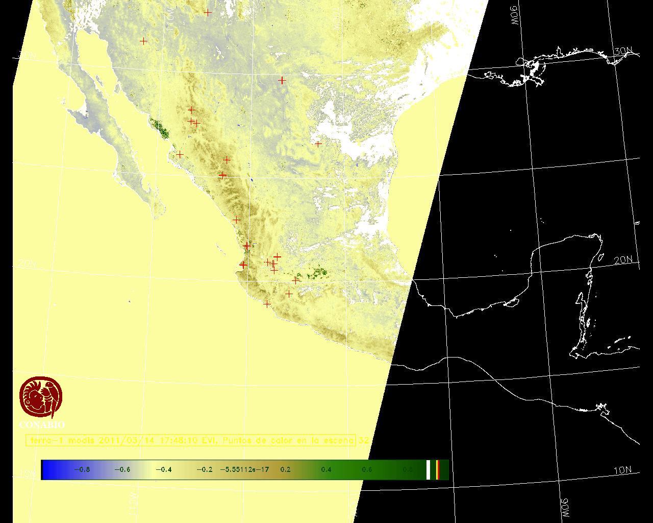 Se considera como punto de calor al elemento espacial mínimo de la imagen (pixel) que reporta una temperatura elevada. Para las imágenes diurnas la temperatura mínima considera es de 42 C y para las imágenes nocturnas es de 25 C. |