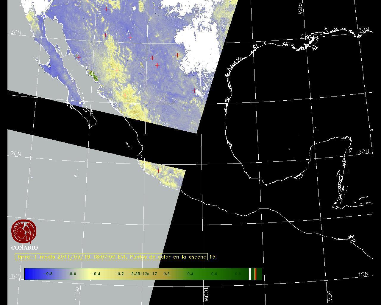 Se considera como punto de calor al elemento espacial mínimo de la imagen (pixel) que reporta una temperatura elevada. Para las imágenes diurnas la temperatura mínima considera es de 42 C y para las imágenes nocturnas es de 25 C. |