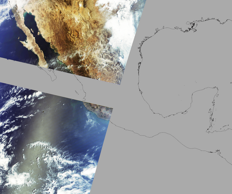 Nubosidad en el terreno:13% Nubosidad sobre México:4% Datos nulos en la escena:49% Datos nulos sobre México:36% |