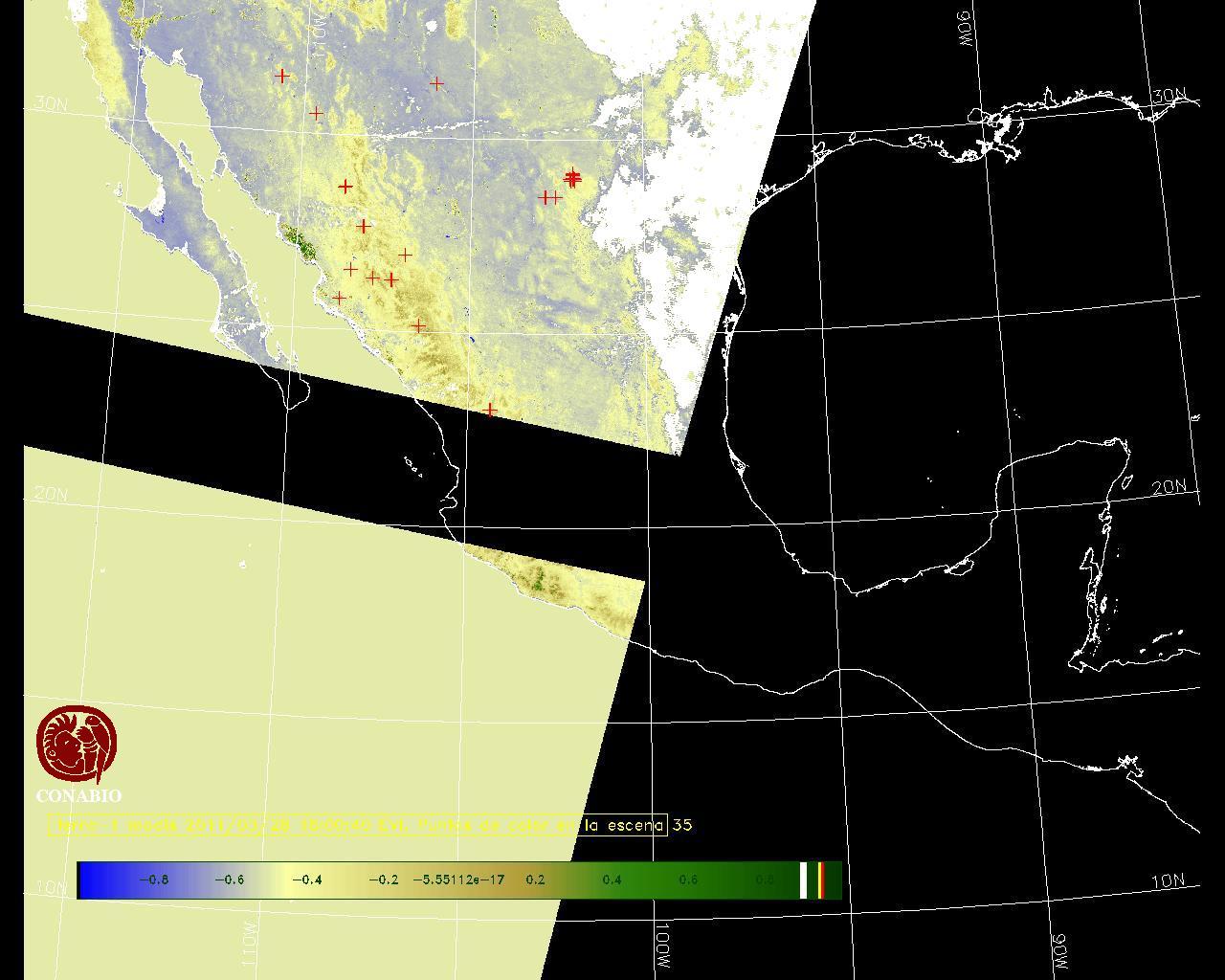 Los valores del índice van de -1 a 1, entre más cercano al valor 1 la vegetación presenta mayor vigor. Los índices de vegetación son utilizados para conocer el comportamiento de la vegetación tanto espacial como temporal. |