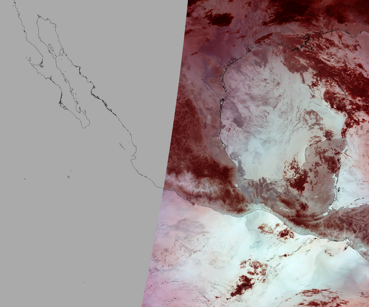 Nubosidad en el terreno:6% Nubosidad sobre México:0% Datos nulos en la escena:45% Datos nulos sobre México:53% |