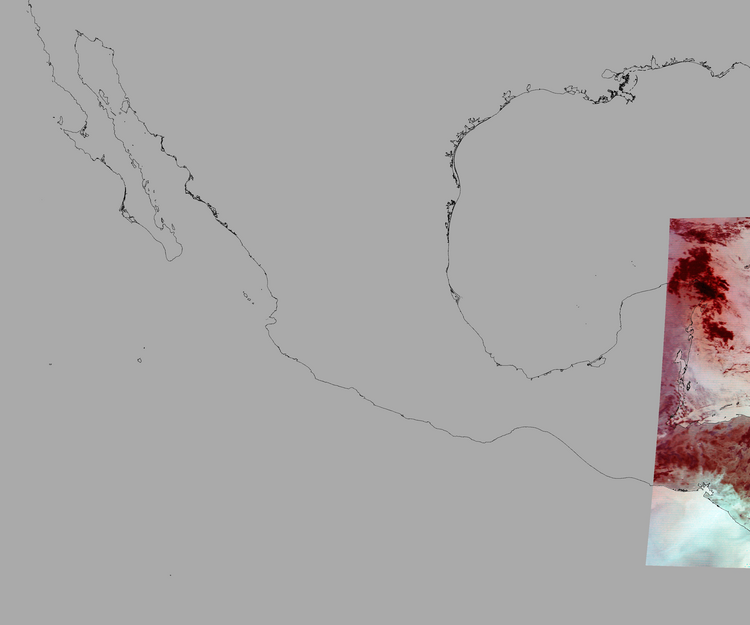Nubosidad sobre el terreno:0% Nubosidad sobre México:2% Datos nulos en la escena:91% Datos nulos sobre México:97% |