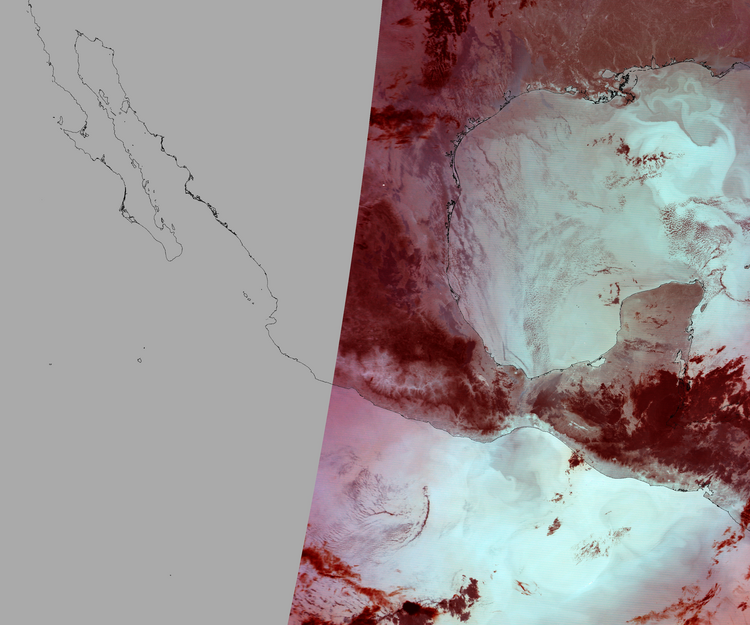 Nubosidad en el terreno:1% Nubosidad sobre México:0% Datos nulos en la escena:45% Datos nulos sobre México:53% |