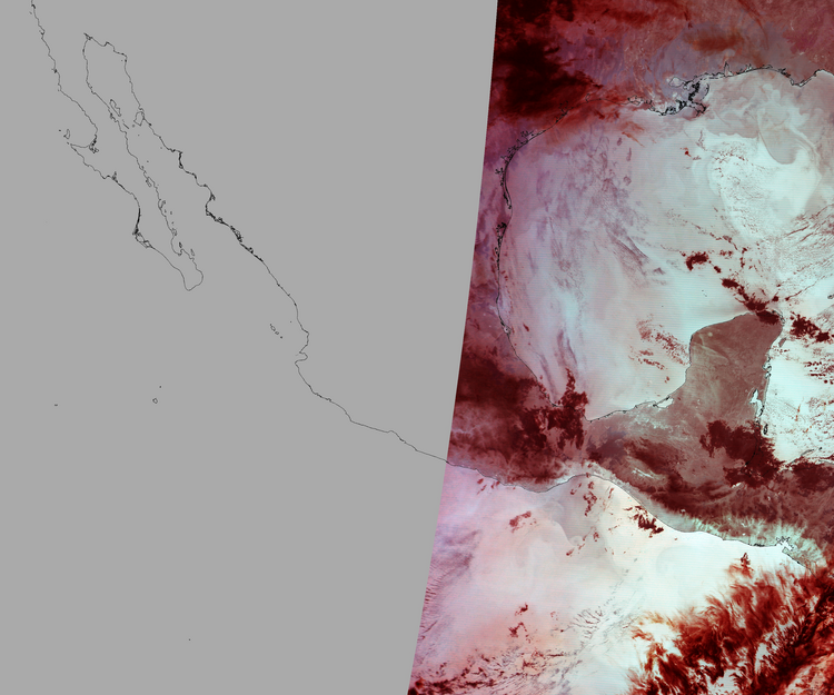 Nubosidad en el terreno:7% Nubosidad sobre México:0% Datos nulos en la escena:55% Datos nulos sobre México:71% |
