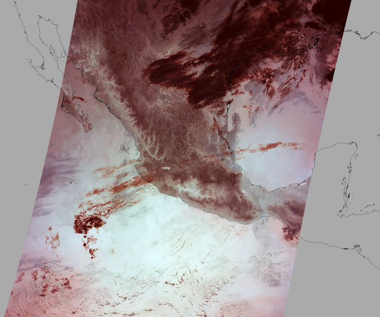 Nubosidad en el terreno:23% Nubosidad sobre México:8% Datos nulos en la escena:28% Datos nulos sobre México:14% |