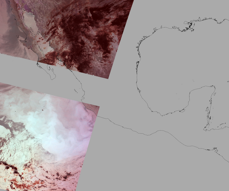 Nubosidad en el terreno:36% Nubosidad sobre México:31% Datos nulos en la escena:54% Datos nulos sobre México:45% |