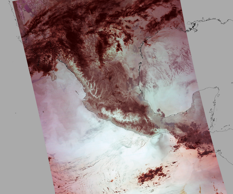 Nubosidad en el terreno:24% Nubosidad sobre México:19% Datos nulos en la escena:28% Datos nulos sobre México:4% |