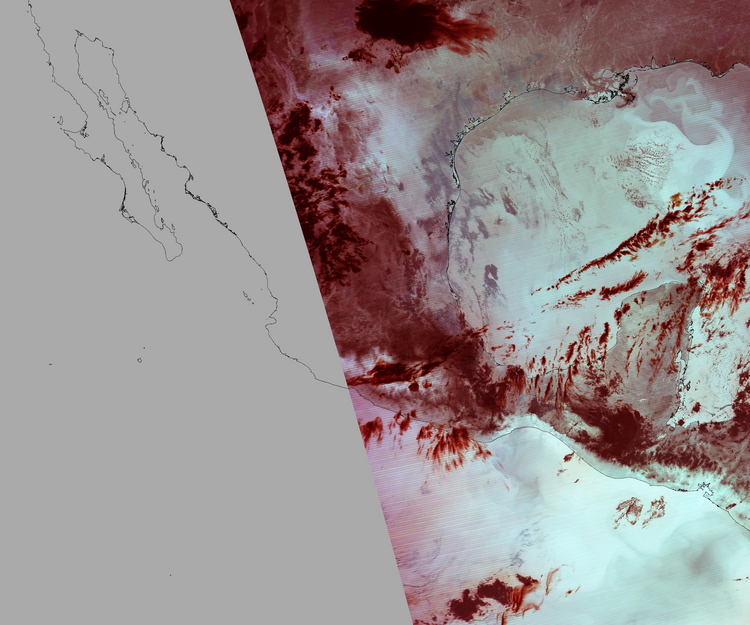 Nubosidad en el terreno:6% Nubosidad sobre México:7% Datos nulos en la escena:43% Datos nulos sobre México:37% |