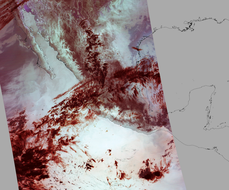 Nubosidad en el terreno:7% Nubosidad sobre México:9% Datos nulos en la escena:30% Datos nulos sobre México:11% |