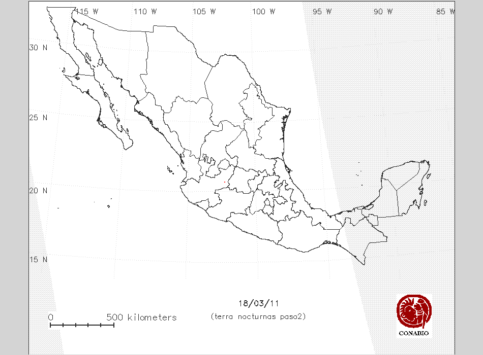 Se considera como punto de calor al elemento espacial mínimo de la imagen (pixel) que reporta una temperatura elevada. Para las imágenes diurnas la temperatura mínima considera es de 42 C y para las imágenes nocturnas es de 25 C. |