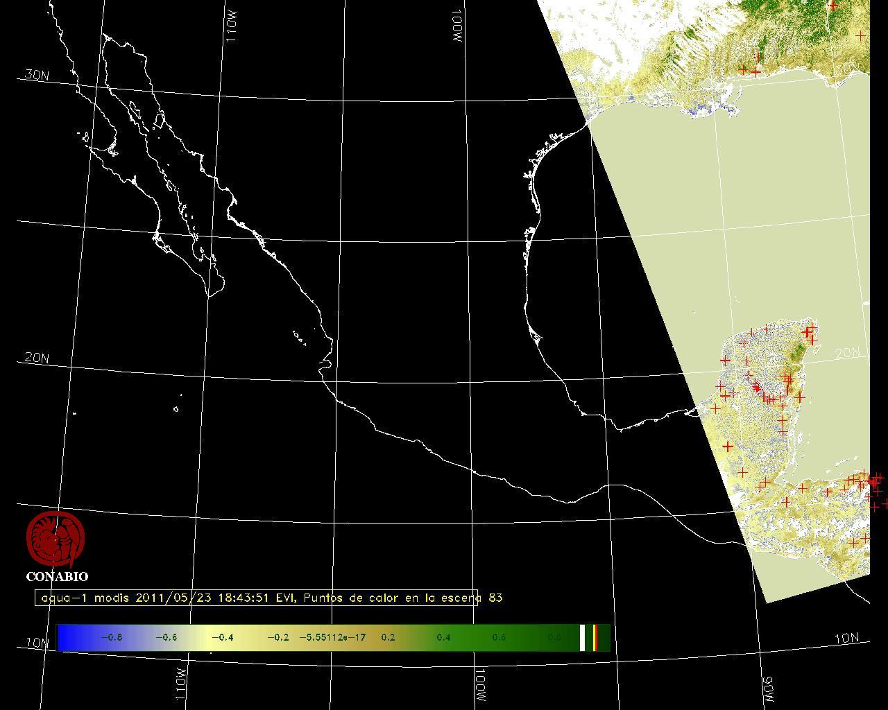 Se considera como punto de calor al elemento espacial mínimo de la imagen (pixel) que reporta una temperatura elevada. Para las imágenes diurnas la temperatura mínima considera es de 42 C y para las imágenes nocturnas es de 25 C. |