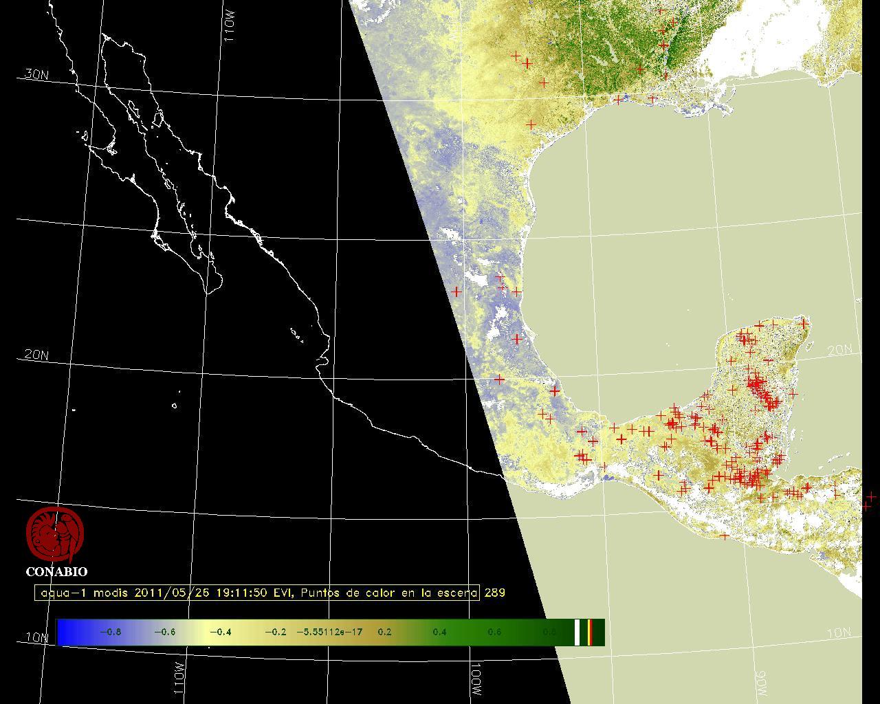 Se considera como punto de calor al elemento espacial mínimo de la imagen (pixel) que reporta una temperatura elevada. Para las imágenes diurnas la temperatura mínima considera es de 42 C y para las imágenes nocturnas es de 25 C. |