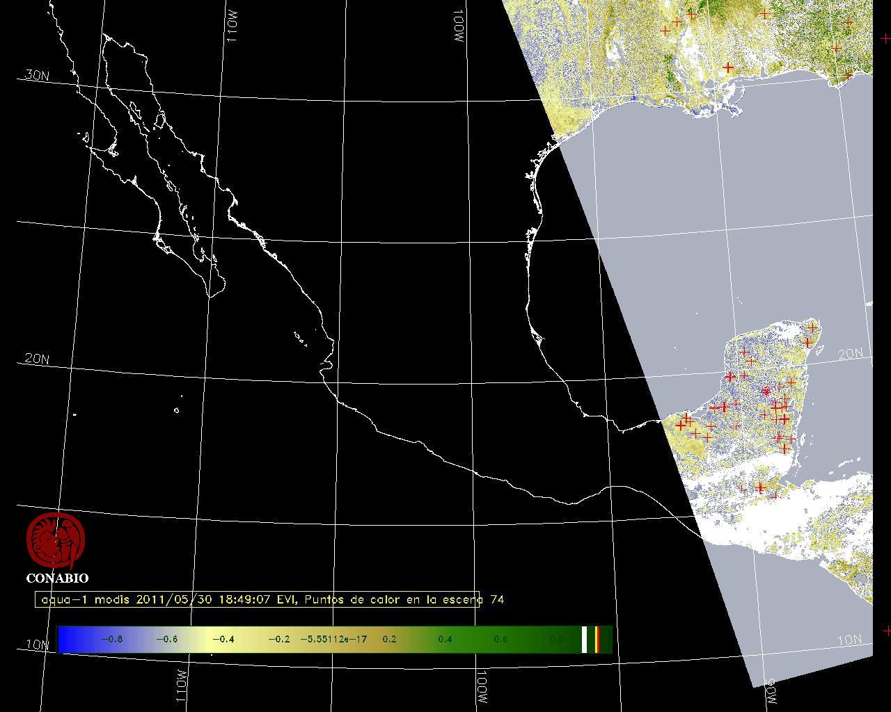 Se considera como punto de calor al elemento espacial mínimo de la imagen (pixel) que reporta una temperatura elevada. Para las imágenes diurnas la temperatura mínima considera es de 42 C y para las imágenes nocturnas es de 25 C. |