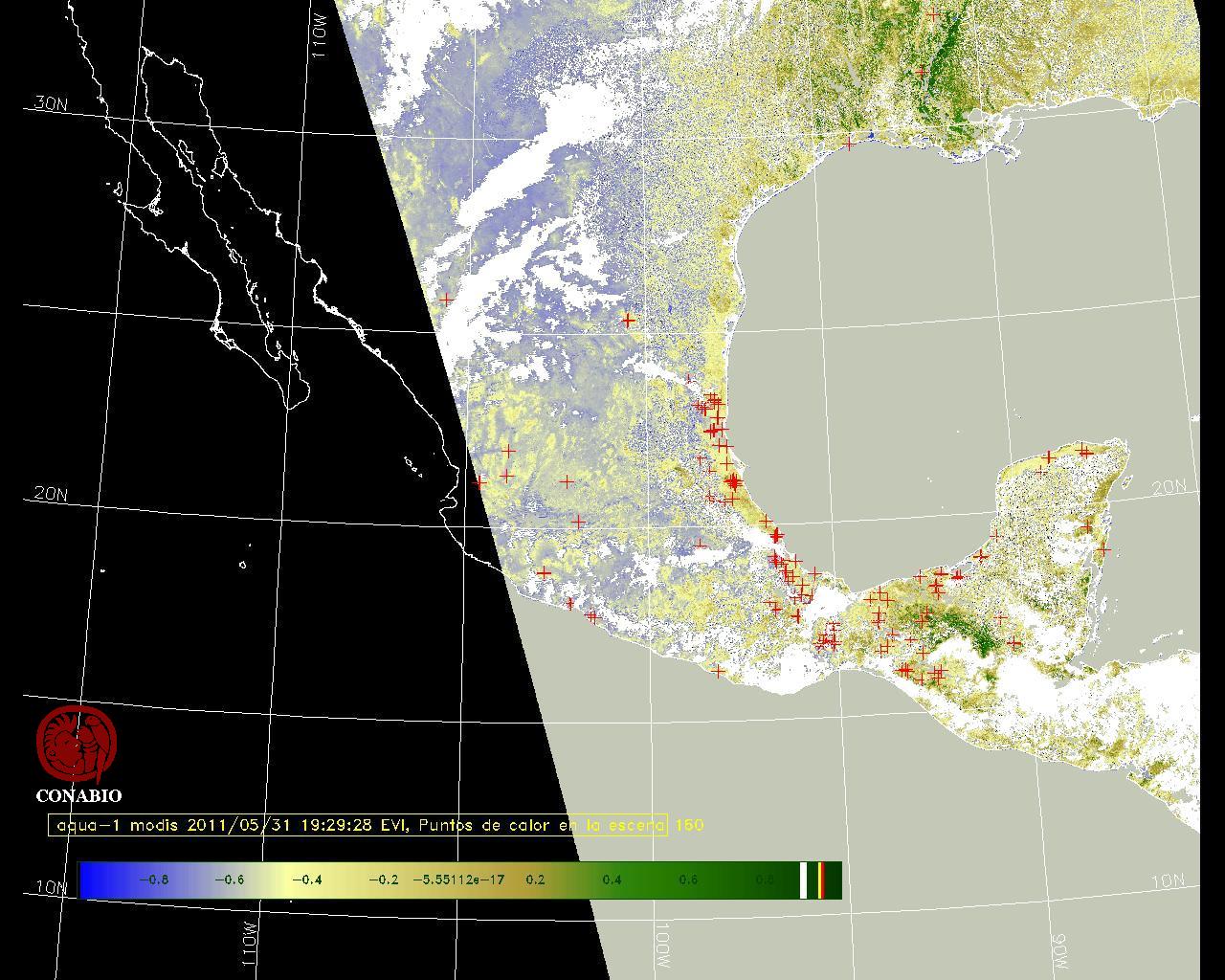 Se considera como punto de calor al elemento espacial mínimo de la imagen (pixel) que reporta una temperatura elevada. Para las imágenes diurnas la temperatura mínima considera es de 42 C y para las imágenes nocturnas es de 25 C. |