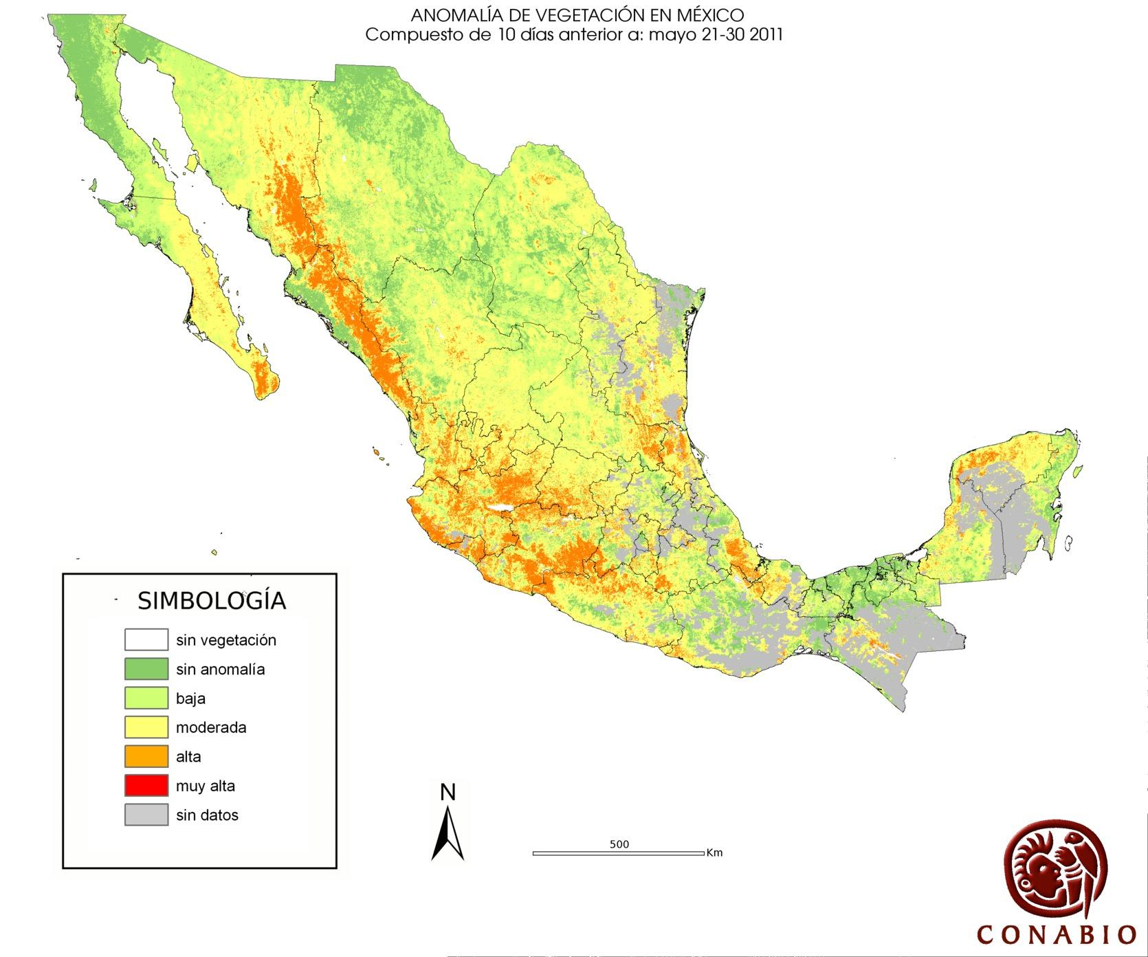 Los valores del índice van de -1 a 1, entre más cercano al valor 1 la vegetación presenta mayor vigor. Los índices de vegetación son utilizados para conocer el comportamiento de la vegetación tanto espacial como temporal. |