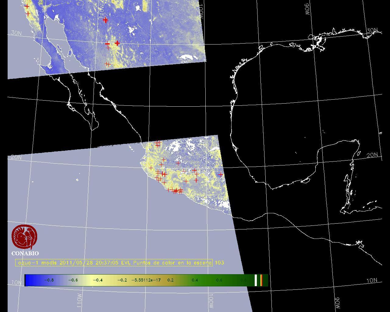 Se considera como punto de calor al elemento espacial mínimo de la imagen (pixel) que reporta una temperatura elevada. Para las imágenes diurnas la temperatura mínima considera es de 42 C y para las imágenes nocturnas es de 25 C. |
